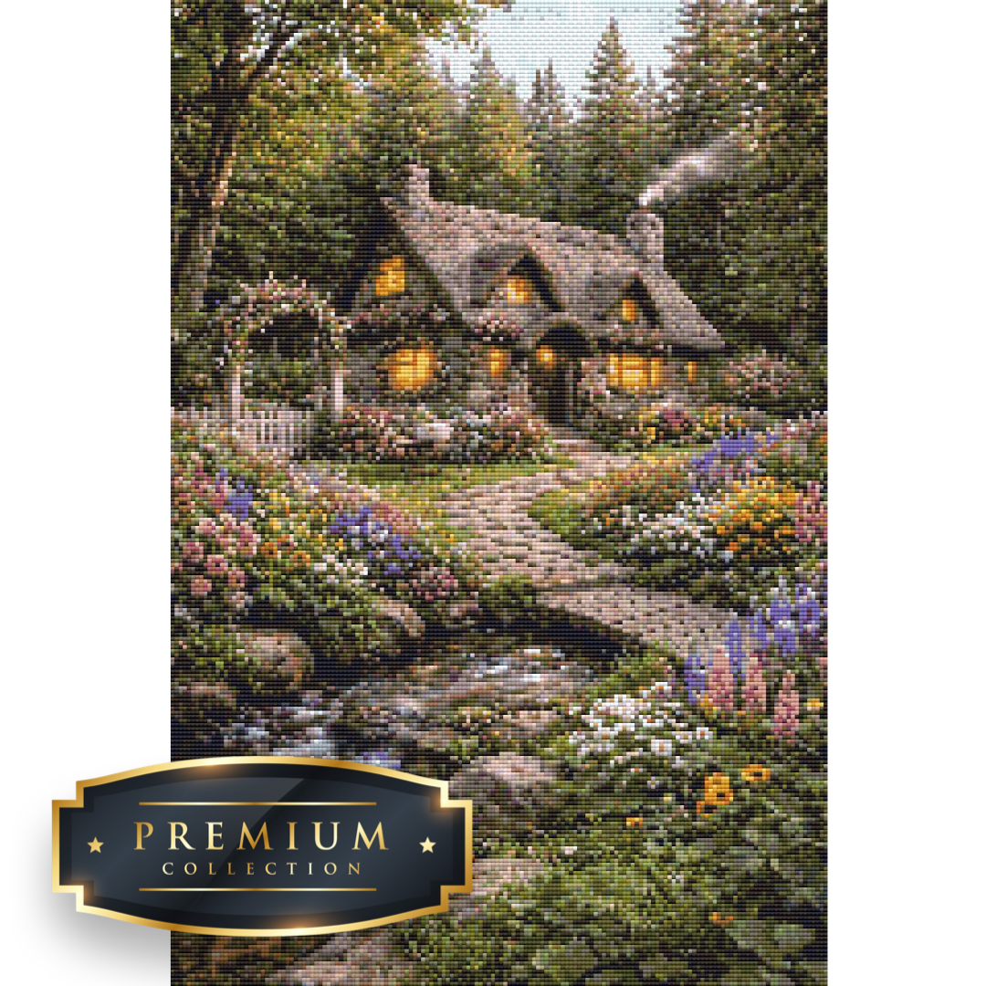Dit diamond painting pakket van een boshuisje bevat een duidelijk leesbaar canvas met volledige bedekking en vierkante steentjes, die overigens al voorgesorteerd in cupjes worden geleverd.