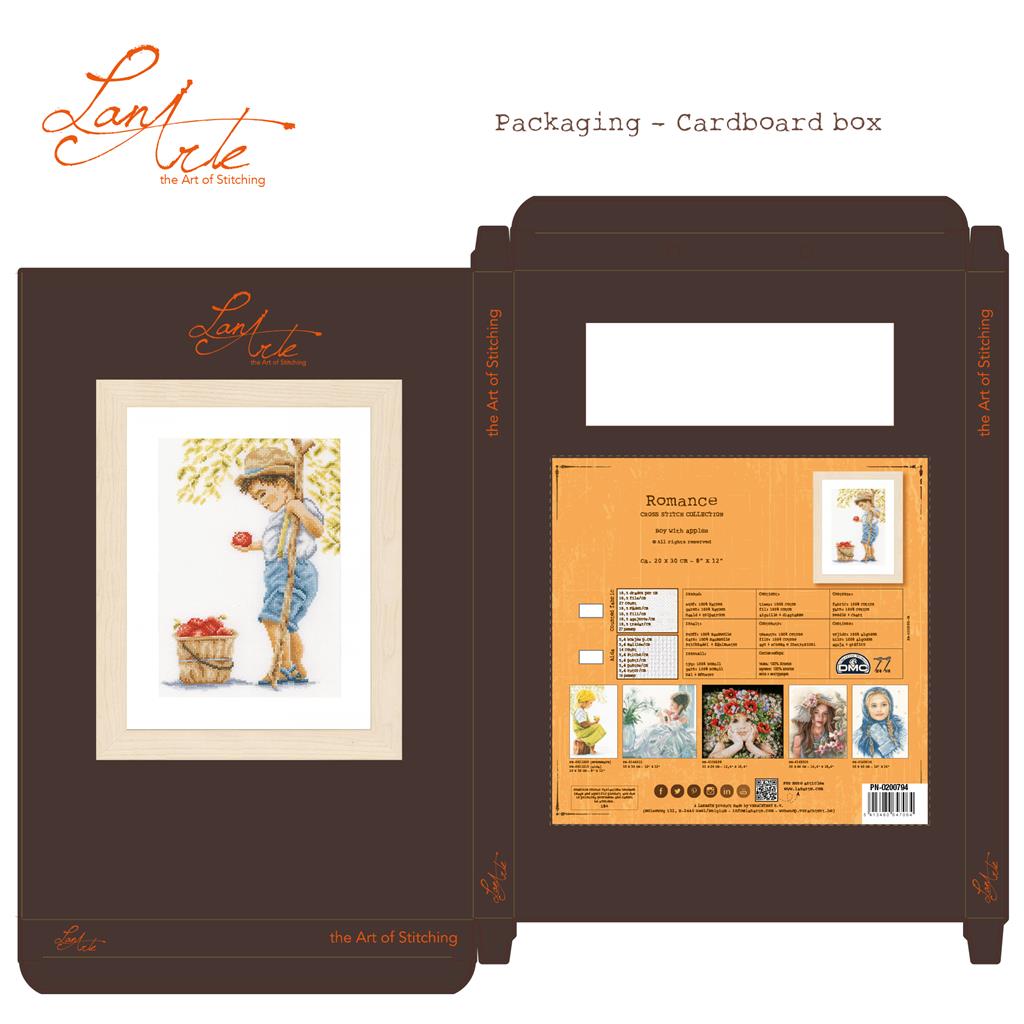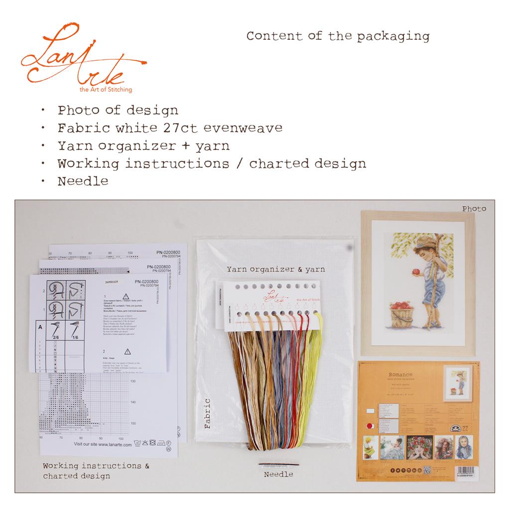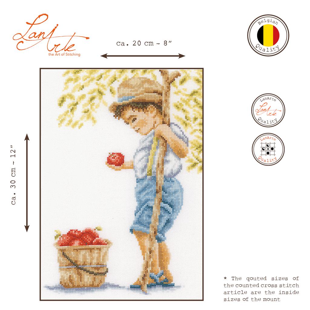 LanArte Boy with apples PN-0200800 Aida borduren (pakket)