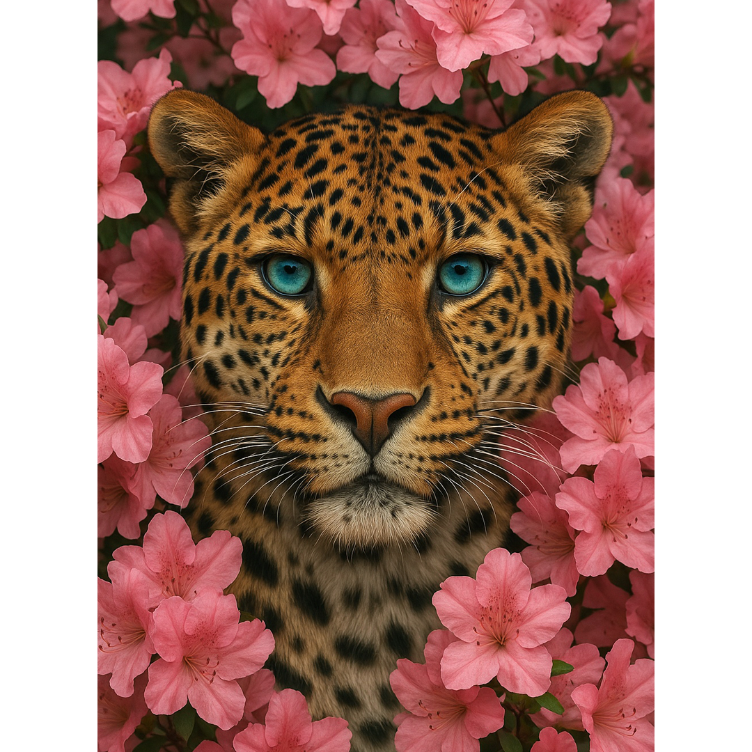 Laat je verrassen door de kracht en elegantie van de natuur met de Luipaard tussen roze bloemen Diamond Painting! Dit indrukwekkende ontwerp toont een majestueuze luipaard met felblauwe ogen die nieuwsgierig tussen een zee van roze bloemen verschijnt. De intense blik van het dier in combinatie met de zachte, kleurrijke bloemen zorgt voor een fascinerend contrast tussen wildheid en tederheid.