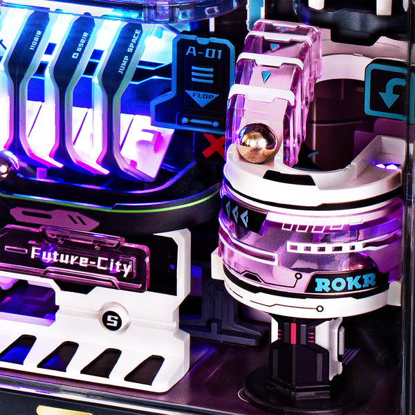 De Robotime ROKR The Future City MR02S is een spectaculaire knikkerbaan in futuristische stijl die je zelf bouwt. Dit model combineert het plezier van een klassieke knikkerbaan met de esthetiek van een cyberpunkstad vol neonlichten, hoge gebouwen en industriële elementen. Het resultaat is een uitdagend bouwpakket én een fascinerend kunstwerk dat blijft boeien, elke keer dat je de knikkers laat rollen.
