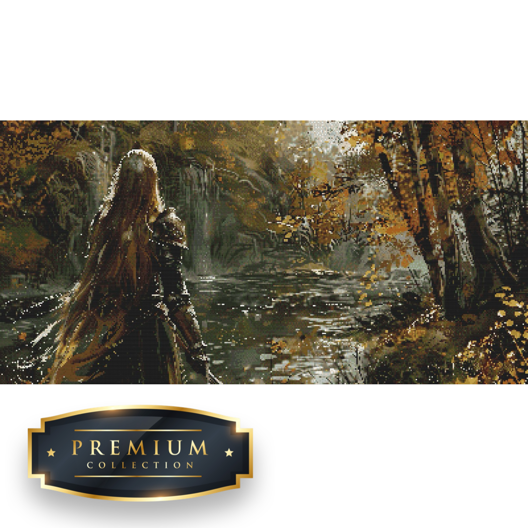 Dit diamond painting pakket van een elf starende over bewegend water bevat een duidelijk leesbaar canvas met volledige bedekking en vierkante steentjes, die overigens al voorgesorteerd in cupjes worden geleverd.