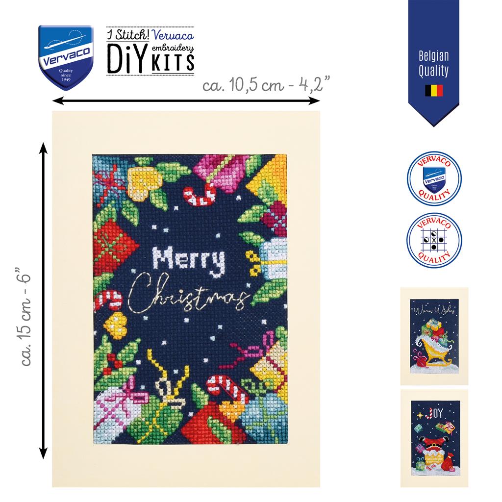 Vervaco Wenskaart Kerst set van 3 PN-0205297 borduren (pakket)